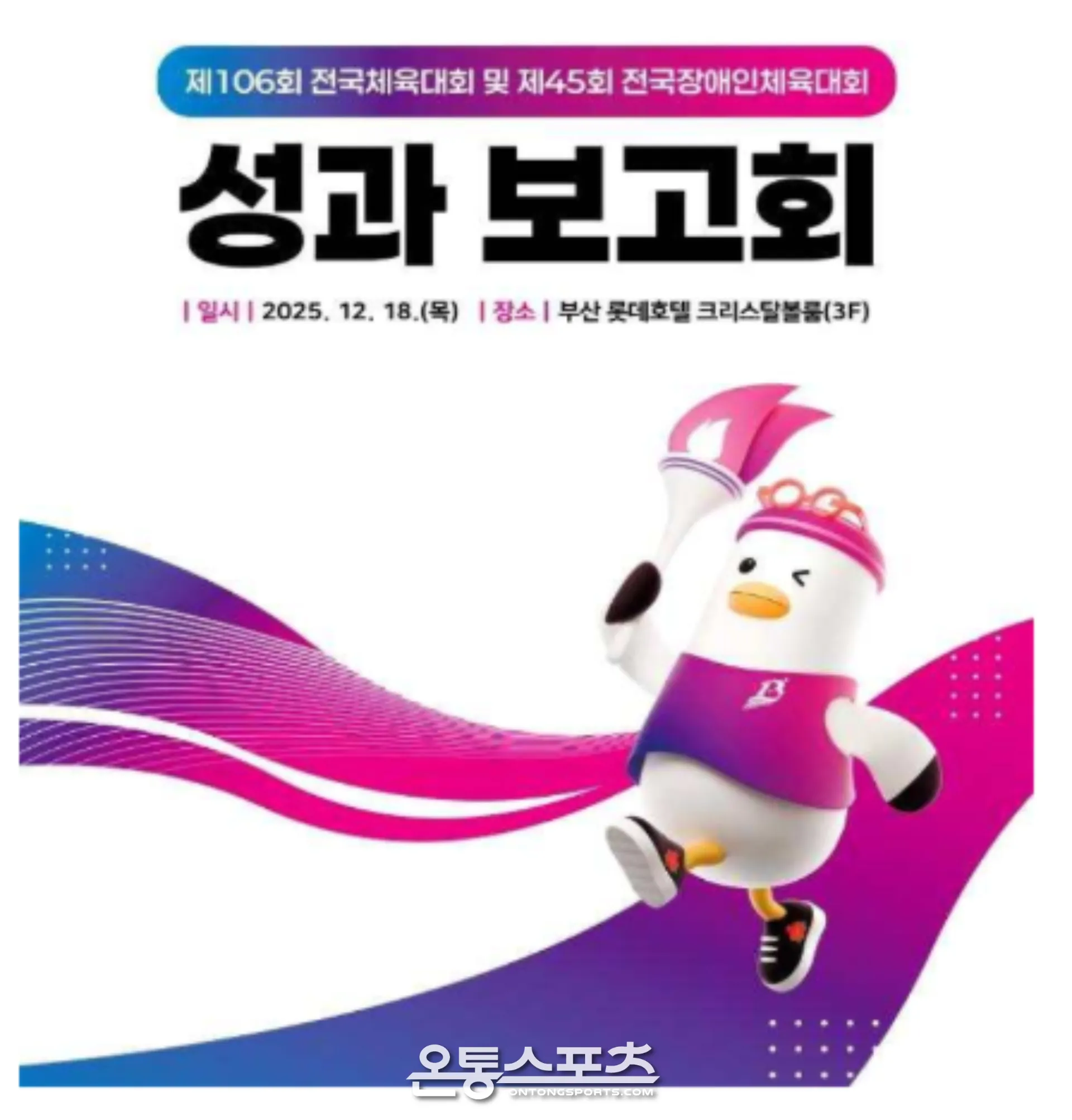 □ 부산시(시장 박형준)는 지난 10~11월 부산 전역에서 개최된 「제106회 전국체육대회」와 「제45회 전국장애인체육대회」의 성공적 개최를 기념하고, 대회의 성과를 돌아보는 성과보고회를 오늘(18일) 오전 11시 롯데호텔 서면에서 개최한다고 밝혔다. ○ 「제106회 전국체육대회」에서 부산은 52년 만에 종합 2위를 기록하며 대한민국을 대표하는 스포츠 도시로서의 위상을 드높였고, 「제45회 전국장애인체육대회」에서는 종합 3위를 기록하며 선수들이 경계를 넘는 도전과 감동을 선사하였다. □ 이번 성과보고회에는 박형준 시장, 안성민 부산시의회 의장, 김석준 교육감을 비롯한 조직위원회 의원, 선수단 및 체육회 관계자, 자원봉사자, 서포터스 등 300여 명이 참석한다. 대회 성공의 주역들과 함께 감동과 노력의 땀이 배어 있는 주요 기록들을 돌아보는 시간은 물론, 숨은 주역들의 이야기를 통해 참가자 모두에게 큰 감동을 선사할 계획이다. ○ 성과보고회는 ▲체전 유공자 감사장 전달 ▲종합 성과보고 ▲체전 기간 촬영 사진 및 영상 상영 ▲‘부기’와 함께하는 체전 영웅들의 인터뷰 등 알찬 프로그램으로 꾸며질 예정이다. ○ 또한, ▲[감사장 전달] 성공적인 체전 개최를 위해 물심양면으로 협조한 약사회, 간호사회, 대한숙박업중앙회부산지회, 한국외식업중앙회부산지회 등 4개 기관에 감사장 전달 ▲[비하인드 스토리 상영] 체전 기간 선수들이 흘린 땀과 눈물을 담은 경기장면과 자원봉사자 및 서포터스 활동장면 영상 상영 ▲[체전 영웅 인터뷰] 체전 영웅 7인*의 인터뷰 등이 진행될 예정이다. * 체전 영웅 7인: 개회식 성화봉송 주자(윤태인 선수, 남기원 선수), 펜싱의 마세건 선수, 부산고의 오타니라 불리는 하현승 선수, 체전 근무복을 제작한 윤석운 디자이너, 자원봉사자 윤혜주 씨, 서포터스 정명은 씨 ○ 아울러, 체전 기간의 열정과 감동을 시민들과 더 널리 공유하기 위해 서면지하상가(2025.12.21.까지)와 부산시설공단(BISCO) 갤러리(2026.1.31.까지)에서 영상과 사진 전시도 진행되고 있다. □ 시는 이번 대회를 통해 스포츠가 단순한 경쟁을 넘어, 화합과 감동의 무대가 될 수 있음을 보여줌과 동시에 지역사회 발전과 시민 단합의 계기를 마련했다. 또한 부산의 경제 활성화 특수도 톡톡히 보며 내실 있는 대회였다는 평가를 이끌어냈다. ○ 총 40,122명(전국체육대회 30,303명, 전국장애인체육대회 9,819명)의 선수와 관계자가 부산을 방문하였고, 대회 관람객은 124,378명에 달했다. 이로 인해 주요 호텔 객실의 평균 예약률은 90퍼센트(%) 이상을 기록했으며, 경기장 인근 상권 음식점 매출도 30~40퍼센트(%) 증가하는 특수를 누렸다. □ 박형준 시장은 “「제106회 전국체육대회」와 「제45회 전국장애인체육대회」는 부산이 하나 되어 만들어낸 위대한 결과물이자 각자의 자리에서 묵묵히 역할을 다해주신 모든 분의 노력과 헌신이 대회의 성공을 가능하게 했다”라며, “'역시 부산이 하면 다르다'라는 것을 전국에 알리게 되었다. 부산은 오늘의 성과를 바탕으로 더 밝은 내일을 준비해 나갈 것이다”라고 전할 예정이다.출처: 부산광역시 보도자료